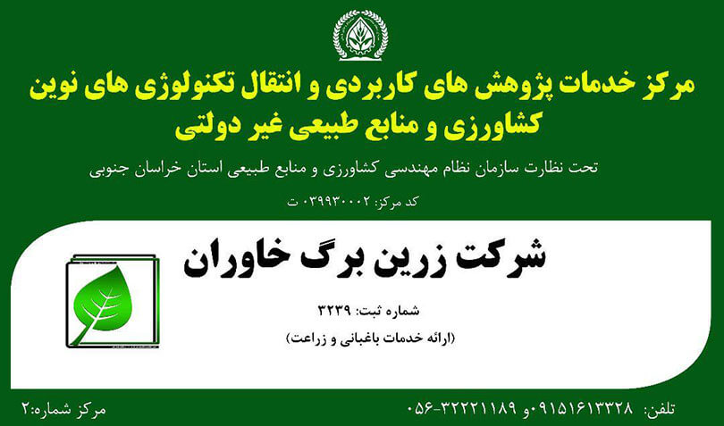 - مشاوره حضوری و غیرحضوری، مطالعه، طراحی و اجرای امورات تولید محصولات زراعی، باغی، دارویی و گلخانه ای متناسب با بازار.
